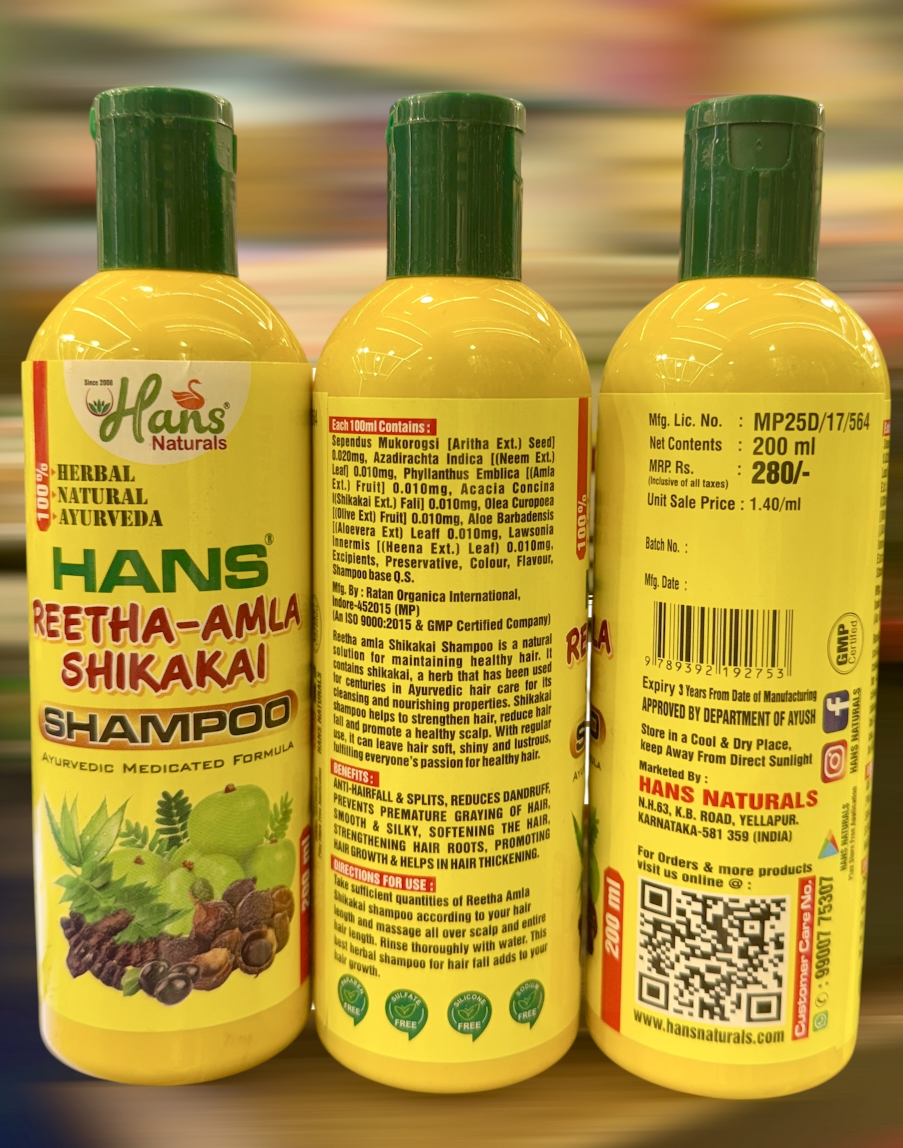 HANS REETHA AMLA SHIKAKAI SHAMPOO PACK OF 2